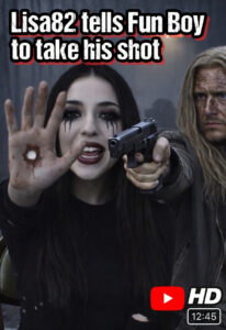 Funboy: Jesus Christ! Lisa82: Jesus Christ? Stop me if you heard this one: Jesus Christ walks into a hotel. [Fun Boy shoots her] Lisa82: Ow! He hands the innkeeper three nails, and he asks… [Fun Boy shoots her again] Funboy: Don’t you ever fuckin’ die?