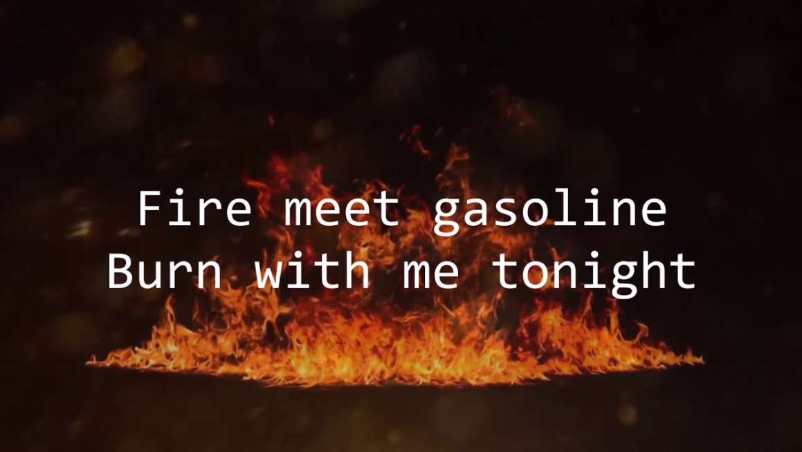 Another great track from Sia’s album 1000 FORMS OF FEAR with a track called “Fire Meet Gasoline,” which has exceptional lyrics, if you know what I mean.