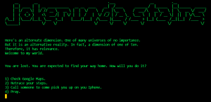 Choose your adventure as you play an alternate reality game (ARG) titled “Joker Unda Stairs” on your terminal or control prompt. In order to play this game, you need Python 3.9.0 installed.