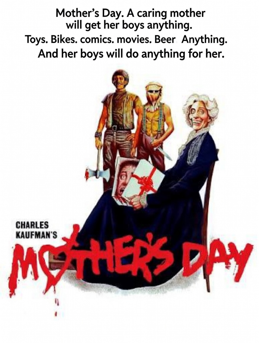 A truly devoted mother will move heaven, earth, and the occasional ribcage to give her darling boys whatever their twisted little hearts desire—toys when they were tots, bikes when they were teens, horror comics when they were bored, R-rated slasher flicks when they were hormonal, and enough cheap beer to drown a small fraternity when they finally grew into full-blown psychopaths. And in return? Her sweet, strapping sons will cheerfully do anything: run errands, mow the lawn, dispose of inconvenient houseguests with garden shears, or just generally turn any quiet holiday into a crimson-soaked family reunion—because nothing says “I love you” like a matching set of filial devotion and felony-level body disposal.
